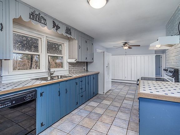 Come see this charming 3-bedroom ranch in a highly desirable commuter location in Fitchburg, MA! With fresh paint throughout the living floor, the kitchen and dining room area feature beautiful tile floors that carry through the hallway and bathroom with ample cabinet and counter space. The living room comes complete with hardwood floors, a brick fireplace, and beautiful artistry on the ceiling. Down the hallway you will find 3 nice sized bedrooms with hardwood floors and great natural light throughout. In the basement level, there is a half bath with a functional shower and toilet along with an additional two bonus rooms worth of space! Attic insulation and leased solar panels will assist the new owner with energy savings. The exterior of the property hosts a detached two car garage and beautiful deck off the back with a built-in bar top for entertaining in the beautiful New England weather! Schedule your showing today!