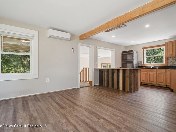 Discover the perfect blend of tranquility and convenience at this beautifully renovated home. Step inside to find an almost completed renovation that awaits your final personal touches. The home features a primary bedroom that's nothing short of a retreat, complete with vaulted ceilings, a spacious walk-in closet, sliding glass doors leading to a private porch, and a luxurious ensuite bathroom equipped with a soaking tub and a stylish tile shower. The accommodation also includes two additional cozy bedrooms, an office for your work-from-home needs, and a den. The heart of the home, the kitchen, boasts granite countertops, a sleek new black stainless refrigerator, and a double oven that promises to inspire culinary exploits. The open-plan living room, luminous with natural light streaming through sliding glass doors, opens to a serene back porch and a level 1-acre yard sporting a fenced vegetable garden—a nod to your green thumb or perhaps a new hobby waiting to happen! With a lush yard perfect for both play and relaxation, and situated within reach of invigorating hiking trails and local organic markets, this home isn't just a dwelling, it's a gateway to a vibrant lifestyle. Enviably close to the Minnewaska State Park Preserve, Rail Trail Kerhonkson, and charming local farms like Kelder's Farm, this residence offers a rich lifestyle ripe with outdoor adventures.
