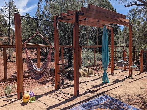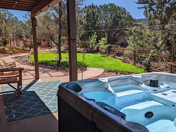 ALL furnishings, appliances, and utilities included in the price. Furnished and remodeled Sedona home on a cul-de-sac. Fenced back yard is an oasis in the desert with newer spa, grassy yard, garden beds, fruit trees, berry bushes, smokeless fire pit for bonfires and an exercise structure/sandbox. The patio has a smart TV, dart board, and a new Weber wood pellet grill. Perfect location in West Sedona, bordering Posse Grounds park with easy access to playground, volleyball, basketball, soccer, amphitheatre for concerts and events, mountain bike course, skate park, swimming pool and water slide, pickleball , tennis, hiking trails, etc. Also walking distance to Whole Foods, Starbucks and several other stores and restaurants. Remodeled kitchen and living room with large center island for entertaining and great natural light. Remodeled master bathroom with large soaker tub, oversized shower with dual shower heads, his/hers floating sinks. Creature comforts like a whole-house humidifier, soft water tank, whole home water filter, reverse osmosis in the kitchen, digital thermostat, digital door locks, smart lights, Sony smart TVs, outdoor lights on timers, security system and more. New range, fridge, dishwasher, etc. Peace, quiet and privacy, yet close to so much! Great family home with fenced yard is ideal for small children or pets. Non-toxic bamboo mattresses, sheets/towels, new couches, two fireplaces. Stocked with everything you need. Just bring your personal belongings and enjoy this beautiful home in Sedona! Absolutely no smoking in the home. Monthly Rent: $4,800 (including all utilities ~ $500) Refundable Security Deposit: $4,300 Refundable Cleaning Deposit: $500 Owner will consider one small dog: $500 refundable pet deposit Landlord is responsible for all utilities "within reason". Utilities include: electricity, natural gas, sewer, water, internet, and trash. Seasonal landscaping/lawn maintenance, and pest control also included. Qualified applicants must: Supply current verifiable income of at least 2x rent Complete an application if over the age of 18 Prefer to rent to a single family No subletting permitted Monthly rental