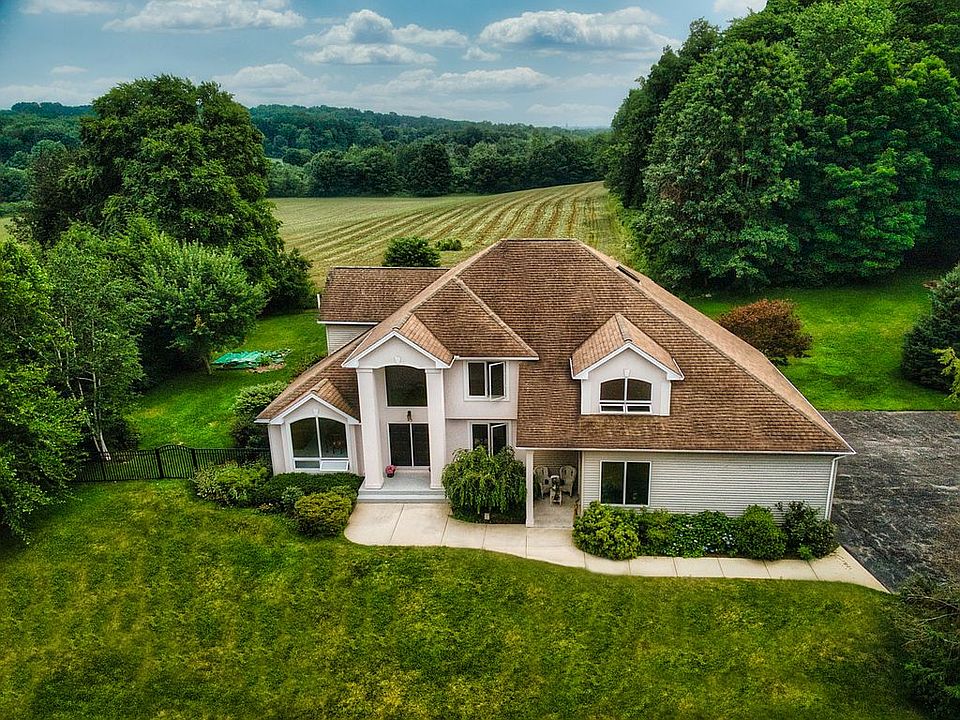 Gently nestled in a safe, tranquil and highly coveted suburban neighborhood, this gorgeous custom built contemporary demands attention. Sitting on nearly an acre of beautifully landscaped property and overlooking lush forest trails, farmland and a golf course, this forever home will check all your boxes when you experience it. After playing eighteen holes at Ledges Golf Course or enjoying a slew of outdoor activities, it is time to cool off! Look no further, this house sports a totally private backyard with a heated in ground fiberglass pool, spill-over hot tub and integrated copper ionization filter system; aka chemical free. These owners had family in mind when building this home; whether that be the welcoming mudroom with half bath including a large closet and granite countertop cabinet, the abundantly spaced kitchen pantry or the cleverly positioned laundry room upstairs that includes electric and gas hookups. The outside of the house boasts large architectural design which is delightfully echoed throughout the interior, not to mention the consistent french doors. Upon entering through the front, you are greeted with high vaulted ceilings, large windows, a sweeping staircase, office space and a formal dining room perfect for entertainment. Entertaining guests is stressless with a spacious open concept kitchen, family room, intimate breakfast nook and a cozy stone fire place. After a day of fun in the kid's very own activities room, retire upstairs to the wonderful master bedroom with a walkout balcony which is connected to the modernesque master bath. Relax in its whirlpool jacuzzi tub while your family or guests enjoy their own privacy in the other three large bedrooms. Storage was also kept on the forefront with numerous walk-in closets, storage areas and even a rare floored walkable attic. The garage fits three cars inside with plenty of extra storage as well. Every detail was thought out when building this home, from the accent skylight in the upstairs bath to the separate up and downstairs heating/cooling units, nothing was thrown to the wind. Enjoy this quaint community which neighbors a nearby marina ( Brunelle's Marina), Northhampton night life and prestigious educational institutions (Mt. Holyoke and Smith College to name a few). This well thought out custom built house in this lovely neighborhood will not be on the market long. Call the owner(413-575-9182) directly to schedule an appointment to view your new home today! Photo/film/editing credit- Husaria Productions- 413-626-9404 www.instagram.com/husariaproductions