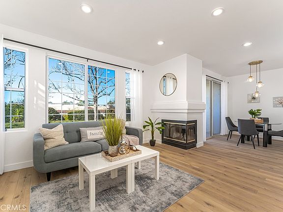 Darling ground level 2 bedroom 2 full baths with a one car ATTACHED GARAGE. End unit tucked in a picturesque corner location overlooking the greenbelt. Feels like your very own backyard. Casafina is a small and highly desirable community located very close to Coto de Caza. As you enter the open and spacious living room you will notice how light, bright and inviting it is. The cozy gas fireplace is a lovely added feature, which separates the dining room; equipped with a beautifully upgraded light fixture, a sliding glass door that gives you access to the entertaining sized patio with peek-a-boo views of the Saddleback mountains, and a counter height bar that opens to the updated kitchen. The kitchen includes: New refaced white cabinets with sleek modern black hardware and matching faucet, brand new stainless steel oven & microwave, stainless steel refrigerator (less than a year old), and recessed lighting. So many other upgrades include: All new LVP flooring & baseboards throughout, beautiful new dual pane windows in living room, new water heater replaced in 2023, and newer A/C replaced in 2020. Freshly painted throughout: All doors, walls, vanities, and cabinets. Brand new black door handles upgraded to give it an updated finishing touch. Both bedrooms include ceiling fans and window coverings. The primary bedroom is spacious with dual closets, en-suite bathroom w/ separate toilet area, dual sinks, and soaking tub. Both bathroom shower heads were also recently upgraded. A bonus closed door laundry room with full size washer and dryer is located off the attached garage. The garage contains added shelving and a spacious closet providing ample storage space. This beauty is perfect in every way! Very close to the pool, sits in the heart of RSM, close proximity to RSM Lake, Beach Club and within walking distance of many shops and restaurants.