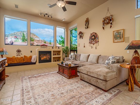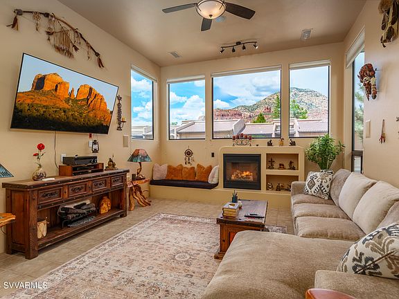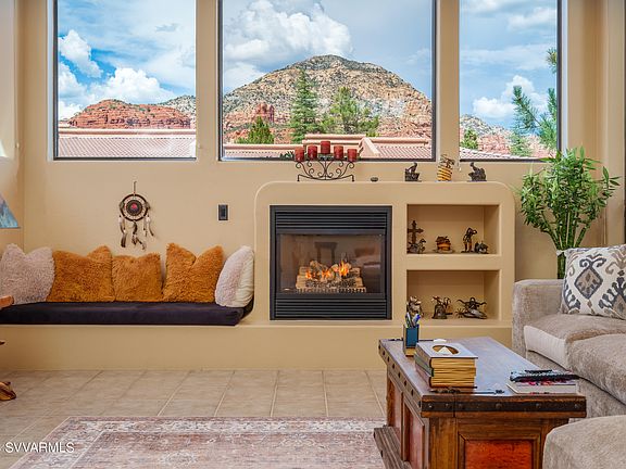 Luxury Arroyo Seco townhome with stunning in your face red rock views of Thunder Mountain. Furnishings Included. Open and bright spacious layout with lots of natural light through windows and skylights. 2 Bedrooms plus office/den with atrium. Livingroom features designer paint, upscale lighting fixtures, high ceilings, cozy gas fireplace and picture perfect red rock views. Kitchen opens up to your living room featuring granite counters, stainless steel appliances and pantry. Primary suite includes access to your beautiful landscaped outdoor living, separate soaking tub/shower and huge walk in closet. Plenty of storage. Upgrades included from 2020-2022; new water heater, new water softener, new landscaping in rear courtyard including synthetic grass, new secuerty screen door, new exterior screens, Upgrades included from 2020-2022; new water heater, new water softener, new landscaping in rear courtyard including synthetic grass, new secuerty screen door, new exterior screens, newcarpeting, new interior paint and more. HOA amenities include community pool and hot tub, landscaping services, exterior maintenance, trash and water. Call today!