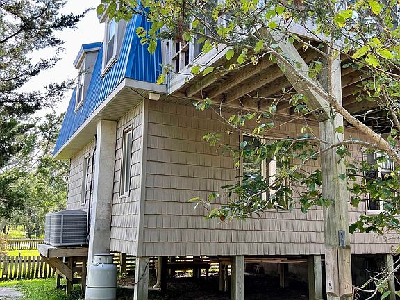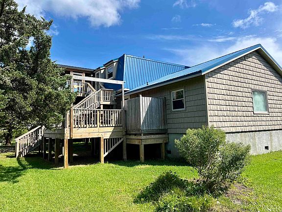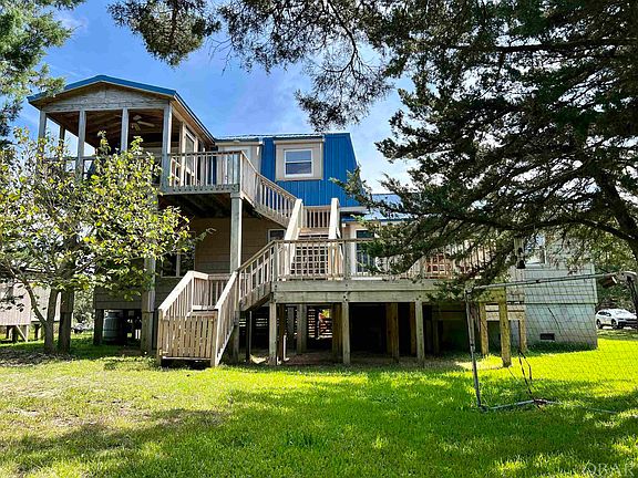 This well maintained island home has had several major renovations done over the years. In 2009 the house was raised, re sided, re wired and re plumbed. In 2020 a new certified fortified roof was installed and in 2022 a new septic system was installed. The house has an attached 2 car garage with raised platform storage areas, and electric garage door. The comfortable interior offers an open downstairs floor plan with spacious kitchen, dining area and living room, one bedroom, laundry room and a full bath. Upstairs has master en suite with large bathroom in addition to a third bedroom and another full bath. There is a second story screened porch off of the master bedroom with stair access to lower level decks. Multiple decks and a great outdoor shower offer plenty of open air space to relax. The 13,000 square foot property includes a fenced in front yard as well as a large open back yard. The residential dead end street is an easy walk or bike ride to town but just far enough to offer lots of peace and quiet. All properties on Sarah Ellen Drive have deeded pedestrian/kayak/paddle board access to the canal at the end of the street which feeds directly into Pamlico Sound on the north side of the island. This is an ideal property for an island primary home or vacation getaway.