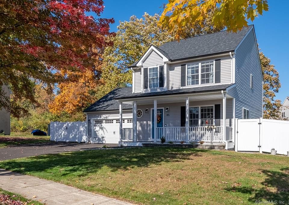 Seller extremely motivated! No reasonable offer refused. Must be in contract Nov 15. Beautiful home...over $100K in updates in last year. There is nothing to want for here! 3BD, 2.5 BA, updated Colonial on a quiet cul-de-sac in a sidewalked neighborhood in East Meriden. Fully fenced yard, new trex front porch and deck. All renovated and updated! ALL the following are NEW in 2022: roof, driveway (fits 3 cars, garage fits 2), insulated garage door, firepit with safety fence, new siding on front of house, new washer and dryer, new cabinets in the big laundry closet upstairs, remodeled bathroom, new luxury vinyl plank flooring upstairs, newly painted living room/dining room/staircase/upstairs hallway/primary bedroom, also a new front door, new ceiling fans with lights in all 3 bedrooms, new blinds in all windows, new recessed lighting in living room, new microwave installed, and new rails and columns on front porch. All that was done in 2022. PLUS: Ring Security, Next thermostat, central air, public water, public sewer, natural gas powered tankless Navien heat/hotwater for unlimited hot water. Everything is in tip-top condition - your home inspection will likely find nothing. Hardwood floors in entryway and dining room, tiled kitchen, half bath and garage entry hall, super clean w/w carpet in living room and in the 3 bedrooms up, new wood-look laminate in upstairs bathroom, hall and laundry closet. A full price offer will receive a $5000 Seller credit to finish the basement! Built 2005 - big unfinished, dry, high-ceilinged basement could be finished. Close to shopping, highways, hospital, restaurants, schools, hiking trails, golf, anything you might want is close by! Move right in. $63 a month fee (paid $378 bi-annually) in this private-feeling, well-maintained planned unit development takes care of road maintenance, snow removal on sidewalks and roads, street lights, trees/lawn between curbs and sidewalks. You handle snow in your driveway and your own lawn maintenancet All furniture is new within last 1-2 years and is negotiable - free if wanted with a great offer or priced per piece...