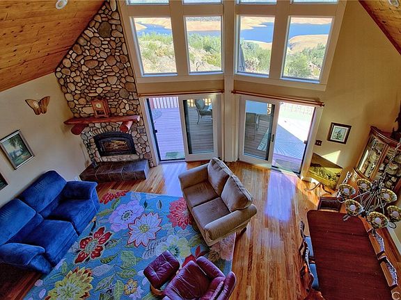 If you are looking for a private haven where there is peace, quiet, & inspiring views, this is a Once In A Lifetime opportunity! A perfect home is nestled into the hillside with panoramic views of the lake & the hills beyond. You will have your own spectacular sunrises to greet you each morning, & a canopy of stars to gaze upon at night. The main floor has the ever so popular open floor plan where you can enjoy the views, the Xtrordinair Fireplace, & your friends & family while you create meals in the kitchen. It has pull-out shelves, an appliance garage, gorgeous granite countertops & stainless steel appliances. You can serve lunch outside on the patio overlooking the lake, eat at the sit-up bar with its pendant lighting, or at the dining table. The main floor also has a guest room, full bath, & a separate laundry room. Upstairs is your master suite that overlooks the lake. There is a full bath with a jetted tub & step-in shower. On the lower level is a second master suite with 3/4 bath & lots of storage. Here you have private access to the outdoor patio & hot tub. With an owned solar system you will have almost no bills to pay. There's a well, septic, & propane. All you have to do is decide if you are going to garden in the raised gardens beds, pick roses, or take the trail down to the lake to play for the day. Come & enjoy the quiet freedom of Scenic View. Be sure to see the supplements for all the amenities in this beautiful home & info on purchasing 25 contiguous acres.