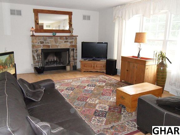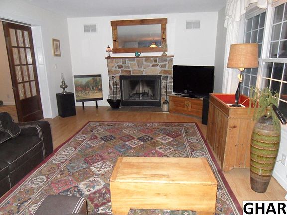 Abundant Space inside and out w/this 4 bdrm, 2.5 bath 2 story home. Large, country kitch w/island. Family Rm w/wood burning Fireplace; french doors lead into Den/Formal LR. Mbdrm w/Large WIC & Full Bath. Oil/forced air heat w/wood back up system. Tranquil 1.5 acre lot great for gatherings. Large deck, hot tub stays. Attached, Oversized 3 Car Garage w/workshop. Plenty of room for extra parking. Ample storage. Close to shopping.. Listing Agent:LISA RABON Broker:FOR SALE BY OWNER PLUS REALTORS - HERSHEY - 717-534-2400