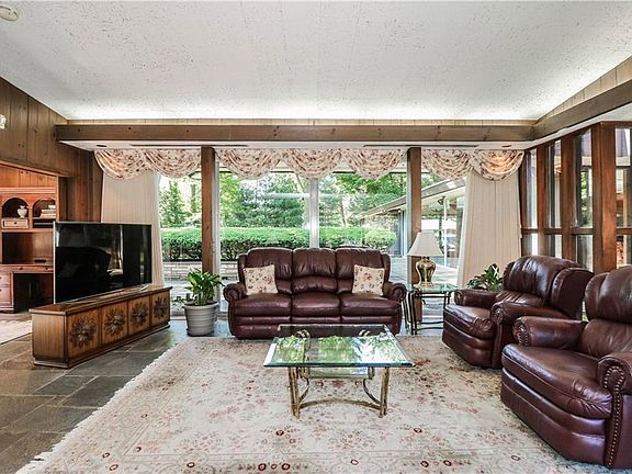 Come home to your own personal piece of heaven! ABSOLUTELY FABULOUS 5 br 4.5 ba ranch indoor-outdoor home sits on approx. 2 acre wooded lot. This magnificent home features a spacious kitchen w/ granite counter tops, cabinets galore. Large formal living room & family rooms each w/ a fireplace & a wall of sliding glass doors that open up to a stunning stone patio to let the beautiful outside in. All-season sun room off of living room also w/ wall of sliding glass doors. Master br suite w/ bathroom, 2 closets & a walk-in closet w/ outside entrance big enough to be another room. Den/study could potentially be additional bedroom. Large driveway leads to over-sized 2 car garage w/ entrance to full basement. Spectacular in-ground pool w/ fountain, all fenced. Alarm system. LOTS of closets. One bedroom w/ bath & walk-in closet off kitchen could be used for live-in help. All this and so much more! Luxury living at its finest! Must see! Showings begin 6/19.