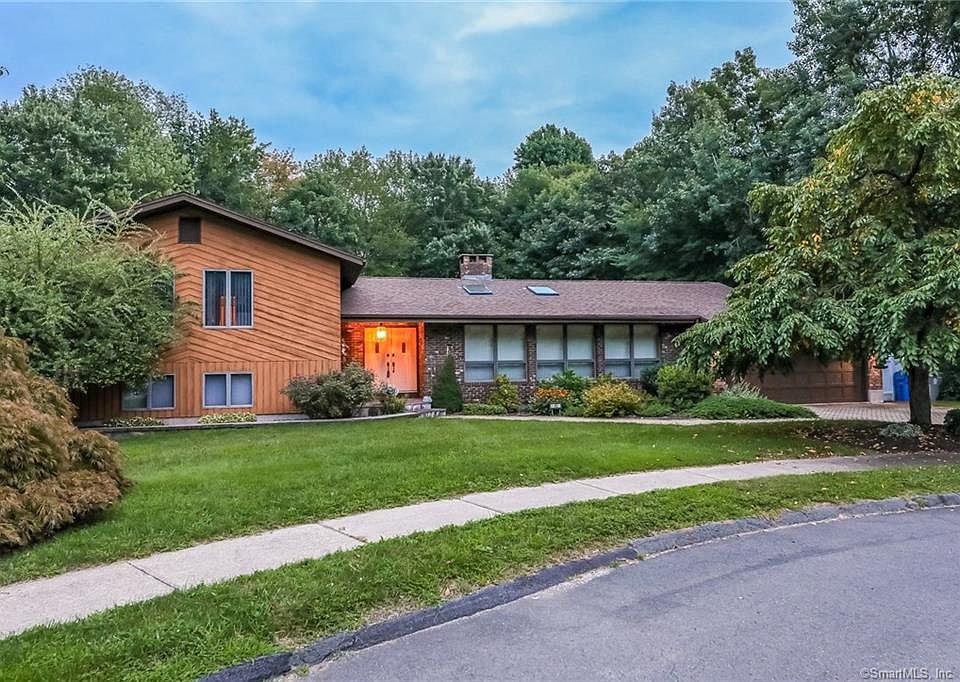 Welcome to 45 Shingle Mill Road, where a private, relaxed lifestyle awaits the new owners of this move-in ready home. It's set against a wooded backdrop and located at the end of a cul-de-sac in a desirable neighborhood in Forestville. Inside, a sunken living room bathed in natural light with skylights and a bank of ceiling-to-floor windows is open to the formal dining room. A large eat-in kitchen with granite counters shares a double-sided fireplace with living room, and has access to the back deck. Also included on the main level is a family room with built-in cabinetry and a half bath with laundry. There are 3 bedrooms located on the upper-level, including the master suite with an abundance of closet space and full bath. A hallway full bath services the other 2 bedrooms. The lower level includes a large family / bonus room with built-in bar and walk-out to a patio. There is also an abundance of storage space in the basement. Outside offers a perfect space for relaxing or entertaining. A large split-level deck overlooks a large 20 x 40 in-ground pool. A cabana with dry bar, dressing room and storage and patio space surround the pool. Home also features surround sound speakers (main level and lower levels and outside deck area Central Air, Central Vac, Security system. A must see home that has much to offer including location, storage and great entertaining space, inside and out