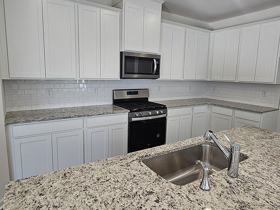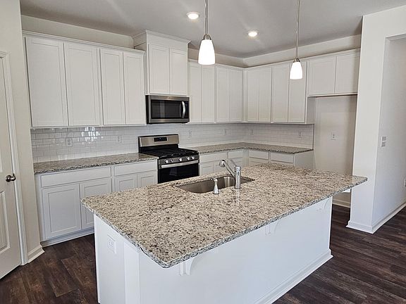 Discover a beautiful one-story home with stunning fiber cement, architectural shingles, and stone accents. Step inside to a bright and open foyer with 9' ceilings and Luxury Vinyl Plank flooring. You'll love the modern kitchen complete with white cabinets, granite countertops, stainless steel appliances, tile backsplash, and an oversized island that's perfect for entertaining guests. Retreat to the large primary suite with a generous walk-in closet and a luxurious primary bath that boasts a tile shower and separate water closet. Experience the ultimate ESC home living in this gorgeous property.