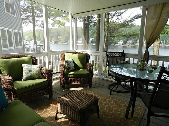 Open House Sunday 1-3PM Beautifully updated FULLY FURNISHED WATERFRONT on Hamilton Reservoir. Home has everything you are looking for in your waterfront home... Afternoon sun and gorgeous sunset views, sandy water-frontage, professionally landscaped yard, walk out basement to patio area, large deck for entertaining, lovely covered screened-in porch that expands living space. What more could you ask for in a waterfront home? How about low maintenance vinyl siding, updated roof, windows, conforming septic and newer furnace and hot water heater. Home comes completely furnished including kitchen wares, outdoor furniture and aluminum dock. Both bedrooms have views of the lake with slider access to 2nd story deck. Location makes for a great second home or year round. Fast access to I-84 and MA Pike. Just 45 Minutes to Hartford, Worcester and Springfield and less than an hour and half to Boston. No showings until open house