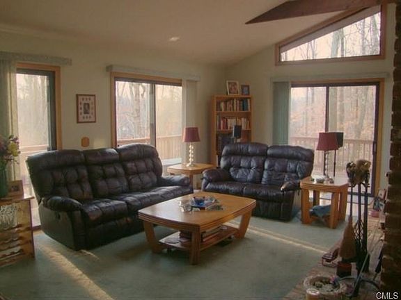 About 2,500 sq ft of living space in this beautiful and lovingly cared for contemporary style home.It sits quietly at the end of a private lane surrounded by scenic views of landscapes, birds and wildlife.This home features a huge wraparound deck off the living room and dining area, 2 fireplaces, sliders in most rooms, large master bedroom with a deck and walk in closet. The kitchen boasts granite countertops and an indoor grill exquisitely built into the brick wall. Other features and improvements include central air conditioning, solid oak doors, and refinished hardwood floors. South Ridgefield location, convenient travel to lower Fairfield County and access to the Merritt Parkway and I95 as well as short distance to downtown Ridgefield.