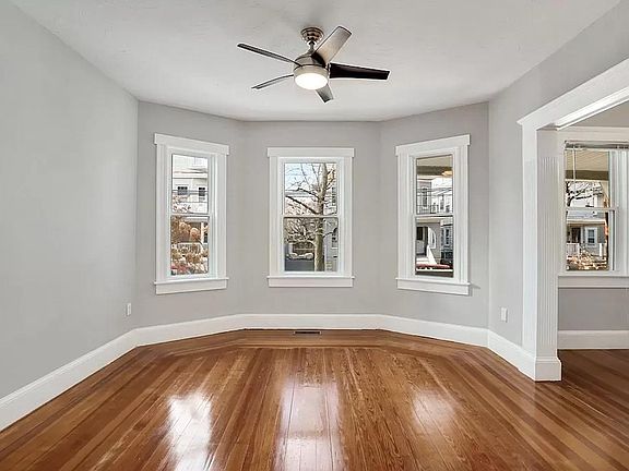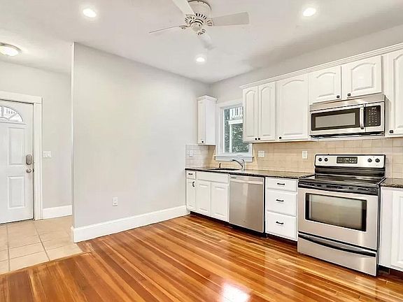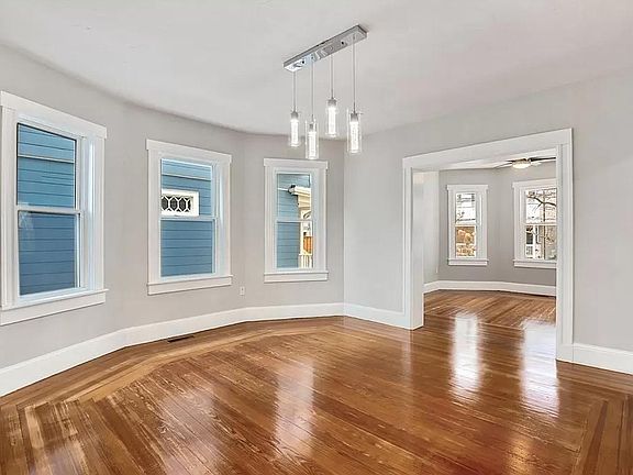 Beautiful modern condo on the first two floors of a two unit home. Shining hardwood floors throughout. Living room and dining room with bay windows. Modern kitchen with granite counters and stainless steel appliances. One and a half bathrooms. One bedroom is on the main level, the other two are upstairs on the second floor. Gas heat + central AC. Laundry available in the basement. Porch and shared yard. One off street parking space included! Available August 1. One month broker fee. Owner pays water & sewer, tenants pay all other utilities. One month broker fee.