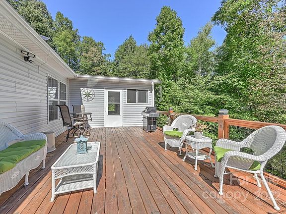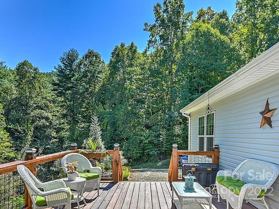 This peaceful and secluded property is guaranteed to impress. Immaculately maintained, 15 minutes from downtown Asheville, mindfully updated inside and out. Enjoy the quiet on the beautiful 24x15 deck, the enclosed front porch or the manicured private space by the stream. Two adjacent lots of 2+ acres include a walking/hiking/4 wheeler trail and an axe throwing station by the backyard fire pit. Special features in the custom designed home include open floor plan, great room with wood burning fireplace is open to the large kitchen and dining area. Upgrades to note: New laminate wood flooring throughout, Fresh paint, New stainless appliances, Tray Ceiling with hidden lighting in primary bedroom with expanded walk in closet, Two bedrooms combined into one suite and Large walk in kitchen pantry. A new French Drain controls water flow in back yard, new evaporating coils for HVAC system recently installed (2022).