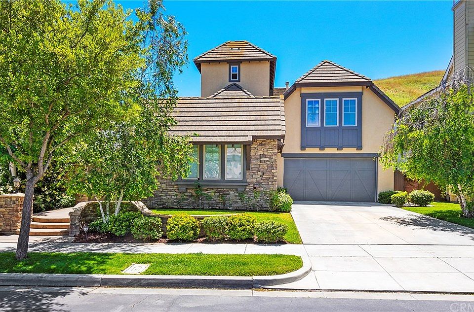 Embrace nature's beauty and generous privacy at this spacious and inviting Ladera Ranch home, which offers an intimate setting on a cul-de-sac street. With nobody behind and views of preserved rolling hills, the residence harmonizes with its location by featuring colorful landscaping and subtle hardscaping that enhance a gated entry courtyard and a sunny backyard with covered patio, fire pit, a built-in BBQ and lifelike synthetic turf. Powered by a cutting-edge fully owned solar electricity system, the open-concept home boasts 5 bedrooms, including a main-level suite, 4.5 baths, an entry with wood-plank feature wall, a living room with classic fireplace, formal dining room, loft, and a 3rd floor reserved exclusively for an office with Juliet balcony and built-in desks and cabinetry. Measuring approx. 3,795 s.f., the executive-class design comfortably accommodates casual entertaining in a family room with media niche that opens to a fireplace-warmed dining nook and an island kitchen with granite countertops, elegant stained-wood cabinetry, and stainless steel appliances including a built-in refrigerator. Enjoy backyard and hillside views from a luxurious master suite that displays a deck, separate vanities, a sit-down vanity, soaking tub and separate shower. The split 3-car garage features a large driveway for guest parking. Residents of Ladera Ranch are served by top schools and close to recreation, parks, meandering trails, shopping, dining and business centers