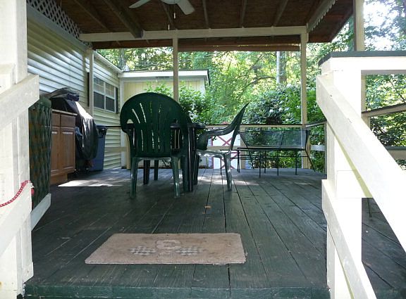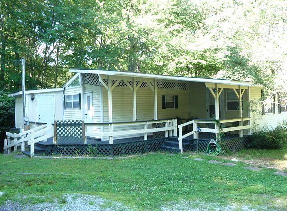 Get away from it all to this peaceful and restful environment. Private, comfortable and cozy and yet surrounded by a community with a clubhouse and activities. Sit on the spacious covered deck and listen to the babbling stream and enjoy the cool breezes while you barbeque, visit with friends and family, or simply enjoy the solitude and nature''s beautiful surroundings. The living room was added on to this mobile and provides great additional space. A storage shed is at the back of the lot for your gardening tools.