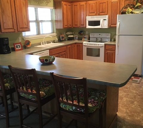 One look and you will fall in love! Fabulous screened porch, deck and fire pit. All furniture, appliances, décor, dishes, and linens included. Beautifully decorated and maintained. Spacious great room, three bedrooms, two full baths. Large walk-in closets and ceiling fans. 9 ft. ceilings, fantastic moldings, and wood blinds. Beautiful, private, wooded setting.