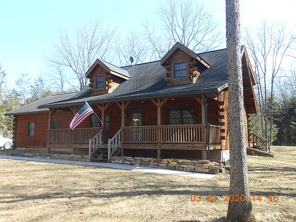 Comfortable and cozy are 2 words to describe this Kuhn's Brothers Log Home. Offers living room w/pellet stove, kitchen/dining area 2 bedrooms and full bath on 1st floor Plus Mast Br, Mast Bath & loft on 2nd level. Loft could be office or TV area. Sit on the covered front porch or large rear deck and relax. Also there is a full basement and 2 car attached garage. Located on 1.06 acres.