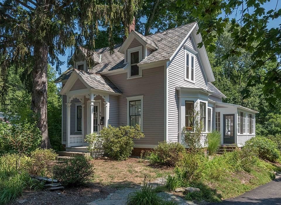 MAJOR PRICE REDUCTION! Beautifully sited on a nearly 1/2 acre lot, this classic farmhouse has retained its period charm while having today's modern updates. A gorgeous side sunporch welcomes you into the expanded dining room/kitchen area, updated with new cabinets, a farmhouse sink and pantry. Beautiful hardwoods lead you to the living room and a den/office space & updated bath round out the main floor. Upstairs are 4 bedrooms and a hall bath. The rear deck overlooks the beautiful yard with perennial gardens and fruit trees. There's also a heated studio space with loft, perfect for the artist, writer, or entrepreneur. Do you want chickens? There's a chicken coop! The updates are numerous...newer slates on the roof with copper flashing, new kitchen/dining room, new upstairs windows, new insulation, new gas boiler and radiators...the list goes on and on. All of this and you're just moments from all of the shopping, dining and entertainment venues of downtown Amherst!