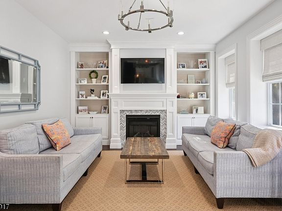 This picture-perfect colonial was completely rebuilt from the foundation up in 2018 and offers an ideal combination of style and function. Sophisticated architectural detailing, custom millwork, and abundant natural light are found throughout the home. First level highlights include a welcoming foyer, a family room with a gas fireplace and built-ins, a dining room with a tray ceiling, a sunlit cooks kitchen with Carrara marble countertops, stainless steel appliances, and a convenient center island, a powder room, and an office/den that provides optimal flexibility for work-from-home or leisure space. Off the kitchen, sliding doors open to a composite deck that overlooks the large, level backyard with mature trees and lush landscaping. Upstairs there are four spacious bedrooms and three full bathrooms. Two bedrooms share a jack and jill bathroom with a double sink vanity and tub shower. Another bedroom boasts an ensuite bathroom with a shower stall. The primary suite has two walk-in closets and a luxurious ensuite bathroom with a soaking tub, large walk-in shower, and double sink vanity. A conveniently located laundry room with storage completes the second level. The walk-out lower level includes a recreation room, utility rooms, ample storage space, and an entrance to the attached garage. Conveniently located one half mile to downtown and the NJ Transit train station, this home has it all!