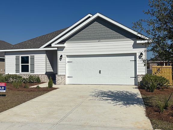 45 Splendor Run is a beautiful new home. 'Wood plank' tile floors throughout, except for two secondary bedrooms. A nice covered front porch takes you into a tile entry hall that leads you past two Jack and Jill bedrooms, and a full bath (shower tub combo), as well as convenient coat and linen closets.