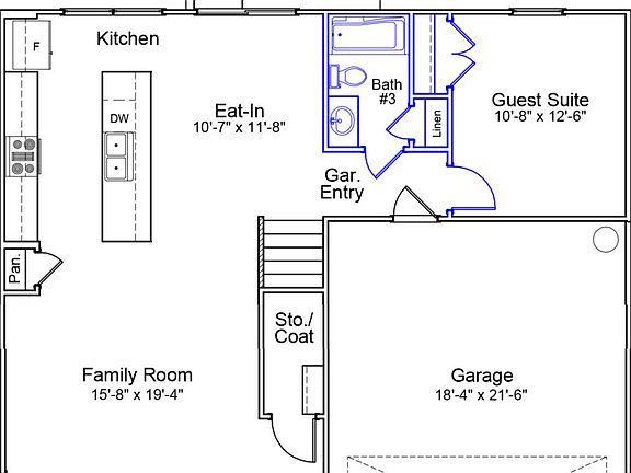 This is a terrific five bedroom floor plan with a guest suite on the main level! The entire main level flooring is "Castaway" luxury vinyl plank. The kitchen features a ten-foot-long island, birch "Quill" cabinets, granite countertops, subway tile backsplash, stainless steel appliances, pendant lights, and a pantry that opens to a huge great room with a ceiling fan and lots of natural light. The guest suite downstairs could also serve as a home office. The spacious primary suite offers lots of natural light, a vaulted ceiling, a ceiling fan, a large walk-in closet, a garden tub and separate shower with tile surrounds, brich "Quill" cabinets, double bowl vanity, and quartz countertops. All of the bedrooms are very private! The open bonus area upstairs makes a great playroom or audio/visual space. 12 x 10 covered porch in back overlooks a deep back yard!
