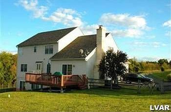 Terrific 6 year old Farmhouse style home w/Stone front. Located on a beautiful 5 1/2 Acre lot that offers some of the best panoramic views Bucks County has to offer. A horse lovers dream, this subdivision is part of a 30 mile horse park trail & is zoned for horses. This property includes a new 720 S.F barn w/a 320 S.F. finished 2nd level & is mostly fenced-in. Home features include 9 ceilings, extensive wood trim, beautiful cermic tile flrs, a spacious kit w/center island & 42 inch maple cabinets, family rm w/a vaulted ceiling & stone F.P.,den/office w/custom oak built-ins, master suite w/3 closets & tiled master bath w/whirlpool tub, finished 1020 S.F. walk out basement, deck & much more.
