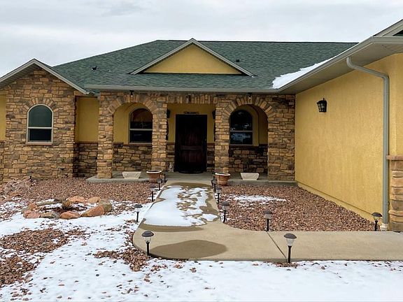 SOLD PRIOR TO PUBLICATION PER SELLER REQUEST. Stunning LECK BUILDERS custom home w- hand textured walls + ceilings, solid wood floors. Custom entry & Kitchen has 16" ceramic tile floors + Radius (rounded) walls. Spacious Living rm w- vaulted ceiling + dbl sided fireplace shared w- the Formal Dining Room + french doors to large covered patio with views of Canon City, Pike's Peak & Mt Pisgah. Expansive Chef's kitchen w-granite countertops + premier appliances incl: Viking Gas-cooktop, Bosch Oven, Frigidaire Microwave, Samsung Refrigerator, Bosch Dishwasher, Custom Cabinets. Two Whitehaus custom sinks w- premier Hansgrohe faucets. Large main-level Master w-2 walk-in closets. Master Bath w- in-floor heating + jetted tub, huge walk-in shower, 2 vanities, + Laundry. GREAT Family Rm has custom Gas Fireplace + a Walk-out Basement. 2nd Kitchenette in the Wet Bar area w-a Wine Room, GE electric range, Kenmore refrigerator + Microwave. 2nd MASTER SUITE! Seller Owned Solar. 3-car (main level walk-in) Garage. New Roof, Gutters + Downspouts 2018. New Stucco 2019. TWO 50-gallon hot water tanks so you'll always have hot water when friends + family visit. A very well Loved + Cared for Home!!
