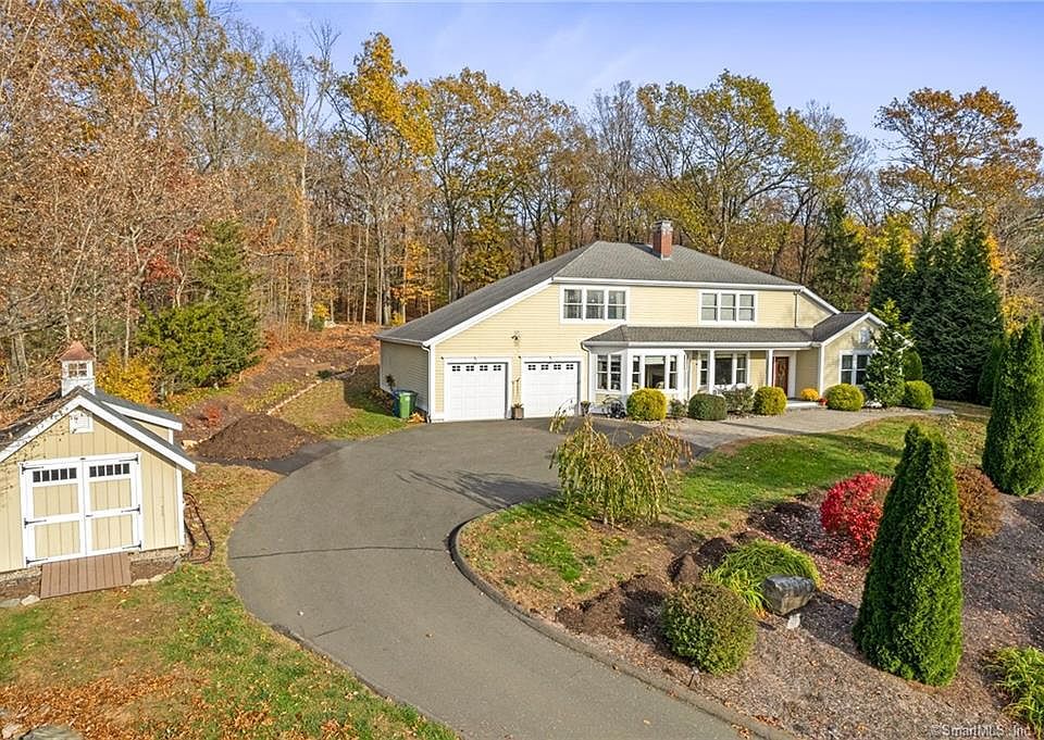 An Absolutely Incredible Home set on a crest in South Glastonbury, with river valley views of Rocky Hill, Newington, and beyond. This cape cod style home features an open-concept first-floor plan, with large entertaining areas and a primary bedroom suite on the first floor. Step inside, and one is greeted by high ceilings and light-filled rooms. A sitting room with a double-sided fireplace compliments the large family room with year-round views out the front windows. The oversized kitchen with cherry cabinetry, granite, and stainless steel appliances includes BOSCH double Wall Ovens, BOSCH Dishwasher, SubZero Refrigerator, Warming Drawer & Range Top. A Coffee and Wine Bar complement the area along with a large breakfast bar. The primary bedroom suite is oversized, with room to spread out, including a walk-in closet, a double vanity bathroom with jet tub and glass shower, as well as a sit-down vanity area. Completing the first floor is a home office, laundry room, and half bath. Upstairs we have 2 generously sized bedrooms with excellent views, large walk-in closets, a shared full bath with a soaking tub, and a large glass shower. There is a loft/lounge area, great as a reading nook or homework area. The paver patio and walkway lead to the rear composite deck with a large yard. The garage features epoxy floors and plenty of storage room, while a garden shed has room for the toys. New Tankless H20 Heater; Propane Heating; Central Vac; Whole Basement Dehumidifier.