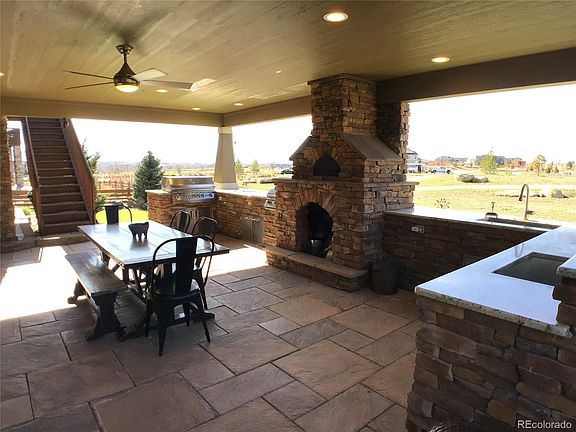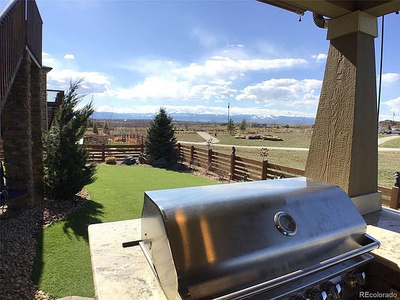 This home truly has it all! Entertainers dream home located in Erie's coveted Colliers Hill. Prime lot backing to open space with unobstructed mountain views. Luxury finishes throughout, no expense spared. Large Master bedroom with retreat and upgraded shower. Large Master closet with custom built-ins. Gourmet chef's kitchen with high end cabinets, monogram appliances and huge island. Gorgeous mountain views and unbelievable 25x18 ft. custom covered outdoor kitchen. Butler's pantry, wine cellar/gym, finished walk out basement, main floor laundry, mud room and Hunter Douglas blinds throughout. Professionally landscaped and turf in backyard for low maintenance. Must see as too many upgrades to list!
