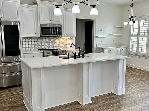 This 3 bedroom 2 bath cottage style home features large front porch, back deck, fenced yard, alarm and more. The kitchen is open to the family room and dining area. LVP flooring was installed in 2019 throughout the home. Kitchen features tiled back splash, quartz countertops, breakfast bar, SS appliances, pantry, breakfast area with coffee Bar and built in desk. Dining room with cased opening to foyer and family room. Split floor plan. Master suite with trey ceilings, double sinks in vanity, walk-in closets, large tiled shower with 3 shower heads and shower seat. Paved driveway with extra parking area. May 2022: repainted interior of home, new shutters throughout the home, micro-vent, dishwasher, refrigerator, tiled shower in master bath, tiled floors in master bath, wireless keypad for garage door. Call today to see.