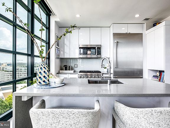 Spectacular Capitol and Washington Monument views, expansive windows and approx. 9-foot ceilings. 1114 at VIO is a light-filled, two-bedroom, two-bath corner residence offering a sophisticated open layout, gourmet kitchen and expansive views making it the definition of modern waterfront living at The Wharf. This residence features hardwood floors in the living and dining room areas and many thoughtful owner added details such as custom California Closet built-ins, custom draperies in the bedrooms and dimmer switches throughout. Unit 1114’s European-inspired gourmet kitchen is equipped with Thermador appliances, Porcelanosa cabinetry, quartz countertops and a waterfall edge island. The spacious primary suite provides a large closet and a luxurious 5-piece marble bath. The residence also includes a full-size parking space and storage space conveniently located on the same level. VIO, delivered by Hoffman & Associates in 2017, provides elevated amenities and services including a 24-hour concierge, state-of-the-art fitness center with a private training room, residents’ lounge and outdoor saltwater infinity pool overlooking the waterfront with an outdoor grill and fire pit. Located in the vibrant Wharf neighborhood, VIO residents have easy access to local chef-driven restaurants, boutique shops, entertainment, green spaces, a world-class marina, waterfront activities and more.