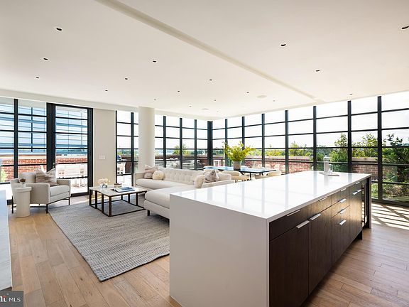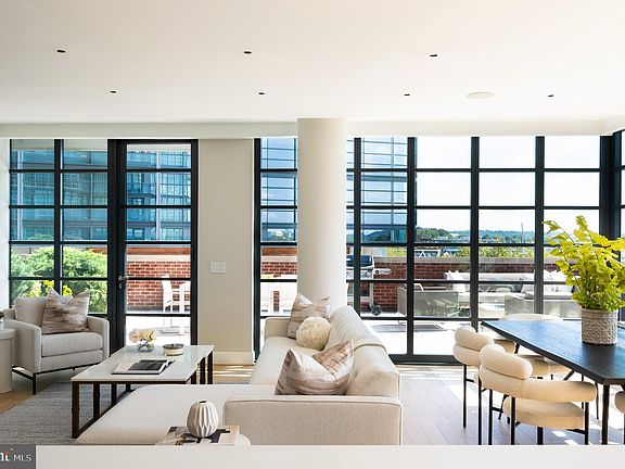A landmark at the heart of Washington’s iconic Wharf, The VIO is a striking modernist masterpiece conceived by Handel Architects, WDG Architecture, and brought to life by PN Hoffman and Madison Marquette in 2017. With award-winning design and an unbeatable location on the water’s edge, The VIO is the definitive address for waterfront luxury. At its core lies a truly one-of-a-kind, corner three-bedroom home that seamlessly blends architectural elegance with panoramic views and unparalleled livability. Perched above the shimmering marina, this rare offering provides a front-row seat to the energy and beauty of The Wharf while maintaining a serene, private retreat. A private elevator entry sets the tone, opening directly into a luminous, open-concept living space. Expanses of floor-to-ceiling, steel-framed windows flood the interiors with natural light and offer unobstructed vistas, while subtly nodding to industrial-modern design. Enhanced by Melissa Colgan Interiors, the home features curated custom finishes and high-end fixtures throughout—each detail thoughtfully considered for both aesthetic and function. Anchoring the space is a contemporary luxury kitchen, appointed with a full suite of Thermador appliances, rich dark wood cabinetry, dramatic quartz waterfall countertops, and a striking custom backsplash. The adjacent dining and living areas sit beneath a floating ceiling, creating spatial definition and architectural interest. A custom Carrara marble fireplace serves as the focal point of the living area, while a formal powder room nearby features a bold floating marble vanity. Step outside to the home’s pièce de résistance, a sweeping approximately 800-square-foot wraparound terrace outfitted with a grilling station, fire pit, elegant landscaping, and a 250-foot garden, a verdant escape in the heart of the city. At night, ambient lighting envelops the space in a warm glow, creating an unforgettable atmosphere against the backdrop of the water and city skyline. The primary suite is its own private sanctuary, introduced by a tranquil sitting area. Beyond a custom dressing area lies the spa-inspired marble-clad bath, complete with dual vanities, soaking tub, and glass-enclosed shower. Two additional bedrooms include a flexible study with built-ins and upgraded closets and share a stylishly appointed hall bath with dramatic dark tilework. A large in-unit laundry room with side-by-side washer and dryer adds practicality to luxury. Smart home features include Lutron lighting controls and motorized shades throughout. Two underground parking spaces convey, an exceptional amenity in the urban core. For those seeking even more flexibility, an exclusive à la carte opportunity exists to acquire the adjacent Residence. This studio unit features a sleek galley kitchen, full bath, in-unit laundry, and additional storage, ideal for a guest, au pair, or extended-stay family member. The open layout enjoys the same striking views and finishes for seamless integration. The VIO offers full-service living defined by sophistication and ease. Amenities include 24-hour concierge, porter service, a private porte-cochère, fitness center, yoga studio, resident lounge with espresso bar, and a saltwater infinity pool and sun deck overlooking the waterfront. Just outside the lobby, discover The Wharf’s vibrant cultural scene, trendy restaurants, boutique shopping, live music venues, and year-round events, all within steps, with easy access to the rest of D.C. Blending refined architecture, breathtaking views, and the most coveted location in the city, this Residence at The VIO is a singular opportunity for the discerning buyer. More than a residence, this is a front-row seat to life on Washington’s waterfront, bold, beautiful, and entirely without equal.