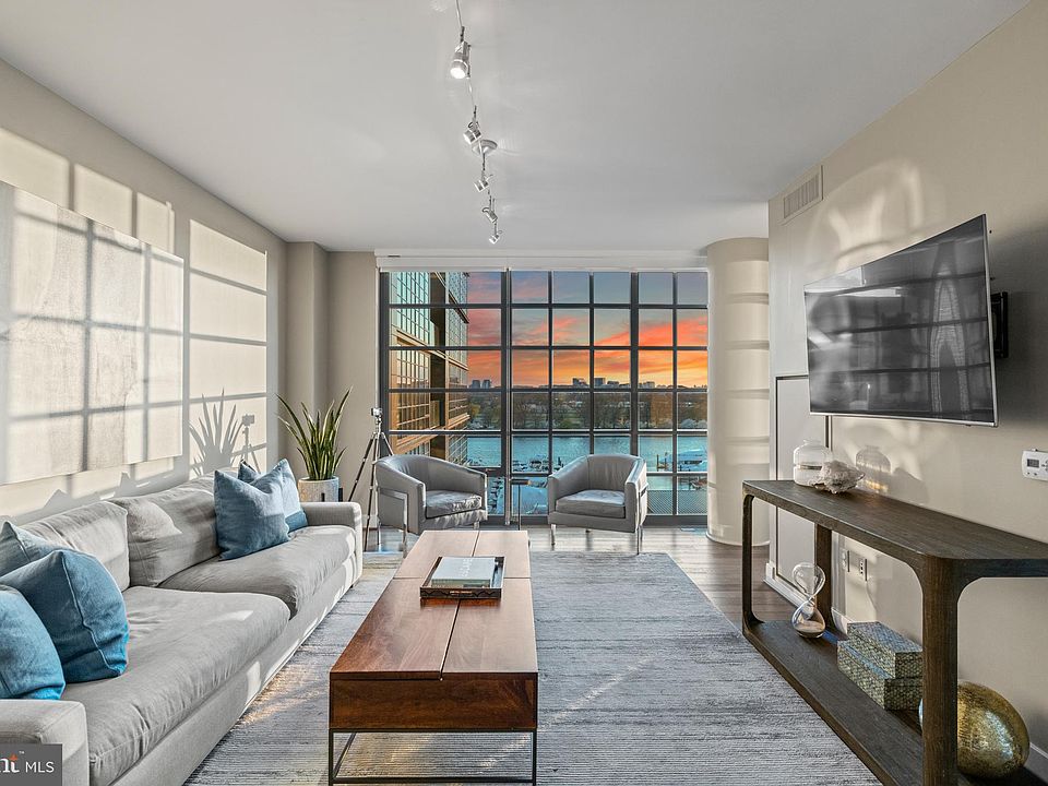 Experience luxury waterfront living with this 2-bedroom condo plus a bonus den area, offering direct views of the Potomac River, Wharf Marina, and monuments. Discover the pinnacle of waterfront living in Washington D.C. at the Vio, where luxury meets unrivaled views. Presenting a rare gem on the 6th floor, this direct water-facing condo is a serene sanctuary that combines opulent living with breathtaking views. Encompassing 1,269 square feet of meticulously finished space, the unit boasts two bedrooms, each offering front-row seats to the majestic Potomac River, Wharf Marina and monuments. The spacious den provides versatility, whether as a home office or guest room, complemented by two parking spaces (one full size and one compact with 2 electric car chargers installed), and an additional storage unit for ultimate convenience. Step inside to discover an abode where every detail is tailored for comfort and style. The European-inspired chef's kitchen is a culinary dream, featuring silk white Porcelanosa cabinets, elegant quartz countertops, stainless steel Thermador appliances with gas cooking, and a center island with a breakfast bar. The open concept living area, accentuated by wide plank, matte-finished hardwood floors and 9-foot ceilings, offers a seamless flow and an abundance of natural light. The expansive floor-to-ceiling windows frame the iconic views of the Potomac River, Wharf Marina, and select Capital Region Monuments, inviting the outside in. The Vio, an award-winning development by Handel Architects and WDG Architecture, built by PN Hoffman and Madison Maquette in 2017, stands as the crown jewel of the vibrant Wharf waterfront community. This world-class neighborhood boasts an energetic collection of restaurants, bars, premium entertainment venues, luxury condominiums, high-end apartments, office buildings, the Wharf Marina, and the renowned Fish Market. Residents of the Vio enjoy a suite of luxury amenities, including a 24-hour concierge, a stylish lounge with an espresso bar and gas fireplace, a state-of-the-art fitness center with yoga studio overlooking the Potomac, a dog washing station, and a private sundeck with an outdoor grilling area, highlighted by a saltwater infinity pool and sun lounge overlooking the docks and river. Unit 603 is not just a home but a lifestyle choice for those seeking to blend luxury with the dynamic energy of one of Washington D.C.'s most sought-after locations. It's a perfect primary residence or a lavish home away from home. With unparalleled amenities, breathtaking views, and a location that puts you at the heart of it all, this condo invites you to experience the best of waterfront living. Step into your future at the Vio and make the Wharf your home.
