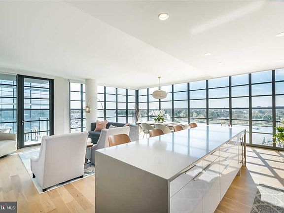 Amazing opportunity to own one of the most desirable panoramic water views in DC overlooking the thriving District Wharf and Marina from 7th stories up. Entertain across almost 2,200 sf inside and out in style as you step onto your living room or master bedroom balcony with a view for miles down the Potomac River and across to the shore-lined Cherry trees unlike any other condo view in DC. Natural light abounds with floor-to-ceiling windows throughout this 3BR 2.5BA "09" tier unit at VIO. Modern luxury at every turn: white oak hardwoods, marble baths, quartz counters & Porcelanosa cabinetry. Private elevator lobby with elevator opening directly to your unit. 2 garage parking spaces + conditioned Storage Unit included. Pool, fitness & 24-hr Concierge on-site and low condo fee. By Appointment, see Virtual Tour Link.