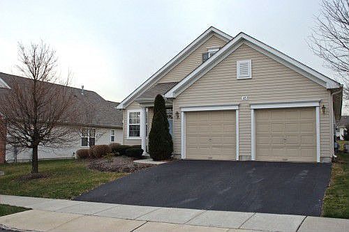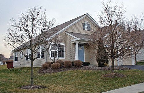 Introducing a charming, elegant and inviting, impeccable maintained and upgraded premium lot Ranch Home with a masterful blend of stylish living and practical design and 2-car garage located in the desirable Village of Flowers Mill 55+ community. Enter into a sundrenched large formal living- and dining room with neutral w/w carpeting and dramatic vaulted ceiling. The heart of this home is a spacious Eat-in kitchen boasting 42' inch maple wood cabinets, corian countertops, island and pantry topped off with quality appliances and hardwood flooring with outdoor exit to wooden deck, perfect for entertaining friends and family. The adjacent cozy family room with its distinct stone gas fireplace invites to relax.Be impressed and admire the sophisticated main bedroom suite with sitting area completed with a full bathroom, double vanity and huge walk-in closet. The second bedroom is quite roomy and offers ample closet space. Off the hallway find a 2nd full bathroom and exit to garage.Fresh neutral paint throughout, new Berber carpet in family room, new refrigerator, new washer, new dryer etc., pre-inspected and in move-in condition. Staged, shows like a model home. Close to major arteries, restaurants and shopping. 1-Year Home Warranty incl. This fantastic home awaits your expectations!