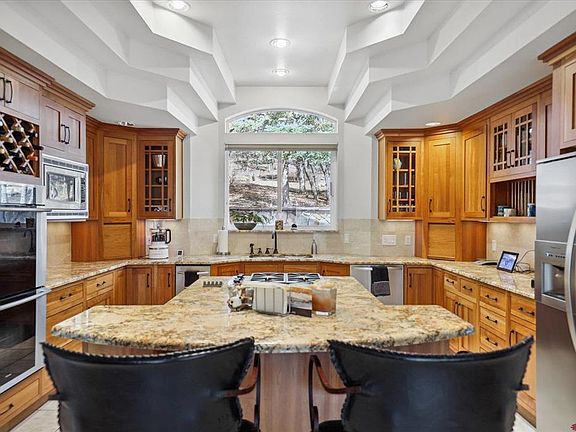 Rockridge is one of the most highly sought after subdivisions in the city of Durango. Surrounded by public lands and trails, Rockridge feels miles away from the city in a rural mountain setting, yet it's only a short bike ride to area schools as well as downtown Durango and all of its exceptional restaurants, shopping and recreational amenities. This community is highly sought after for its true neighborhood-feel, exceptional quality of homes, open space, and aesthetic design mindful of its natural surroundings. This exceptional home was designed by local and highly regarded architect Dean Brookie, and takes full advantage of its setting by bringing in cheerful south-facing natural light into the main living areas. Look for the bonus room too with secret bookcase passage during your tour, ideal as a game room, home office, or home theatre space, or a flexible sleeping area. The design of the home provides a multitude of living spaces from the spacious great room with vaulted ceilings, to the expansive dining and sunroom areas. The second floor of the home features a generously sized master suite with built-in cabinets, walk-in closet, and the perfect window orientation for stargazing in bed. Thoughtfully spaced down the hallway overlooking the great room, you will find two additional bedrooms with a shared full bath between them. There’s also an expansive additional office/craft/guest/mother-in-law area with private bath and kitchenette above the garage. This home is ideal for families who love to host their guests, or who desire separation and privacy for family members. Take note of an endless array of high quality and beautifully finished built-in shelves and storage cabinetry throughout as well as a recently fully remodeled kitchen with granite counters, custom cabinets, stainless steel appliances, and brand new washer and dryer. The home also has a brand new boiler for the radiant in floor heating system. The home has an expansive backyard with amazing outdoor dining and entertainment spaces, plenty of old-growth trees providing for shaded and comfortable outdoor living. The property also hosts three apple trees, an invisible fence for dogs, and is landscaped with raised gardens and rock features, sitting just steps away from the community trail network. Durango is well known for the quality of its local trail systems for hiking, biking and mountain biking. This residence is a short ride or walk to some of the best and most renowned trails in all of the country, and it’s also a short drive from here to the Colorado Trail and endless wilderness adventures that can lead you all the way from southwest Colorado across the state to Denver. Make sure your real estate professional sends you a copy of the Associated Documents attached to this listing for the Pre-Inspection report and Property Disclosure.