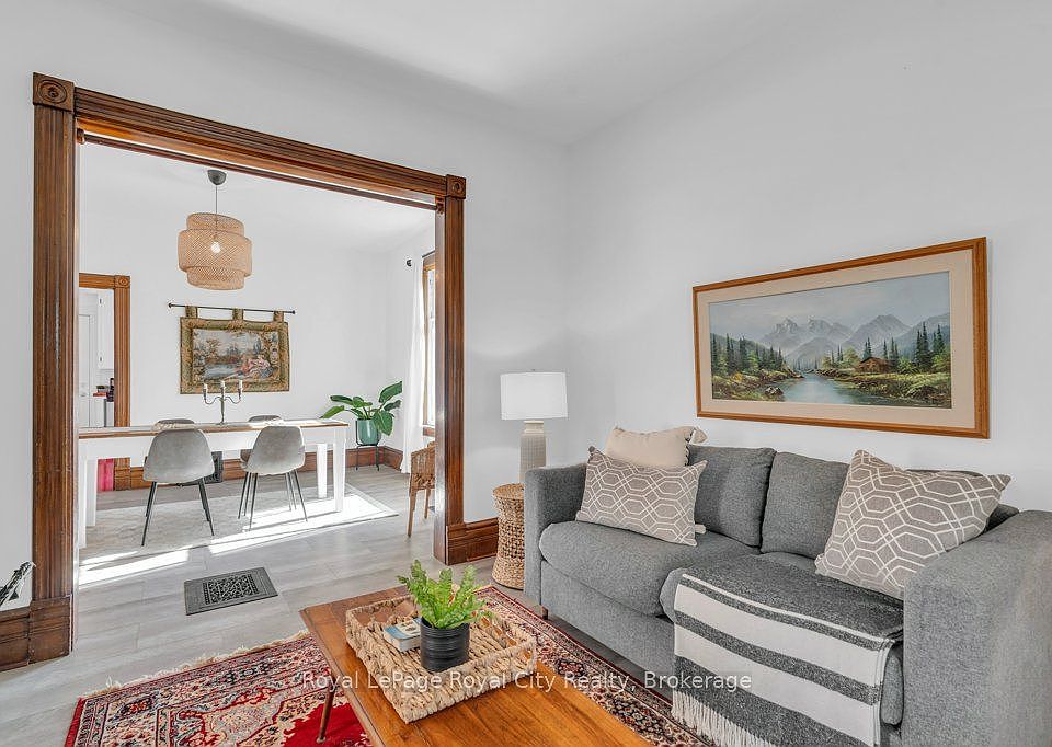 Welcome to 45 Toronto Street! This Edwardian century home is located in one of Guelphs most vibrant and eclectic neighbourhoods, just a short walk to Downtown, the Speed River, parks, and local eateries. Step onto the inviting covered front porch and into a freshly painted home featuring high ceilings and updated flooring (2022). The living and dining areas flow seamlessly, creating a warm and welcoming space for everyday living and entertaining. At the back of the home, the spacious kitchen offers plenty of room to cook and gather, complete with a two-piece powder room and direct access to the south-facing backyard, perfect for gardening, relaxing, or enjoying summer evenings. Upstairs, you'll find new carpet on the stairs leading to four bedrooms, each with a closet (a rare feature in homes of this era), and a full bathroom showcasing a charming clawfoot tub. The finished basement includes a cozy recreation room and ample storage for seasonal items or hobbies. This property sits on an impressive 153-foot-deep lot, providing plenty of outdoor space and potential for future expansion or customization. Whether you're a growing family or a character-home enthusiast, 45 Toronto Street delivers timeless charm in a prime location.