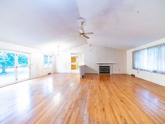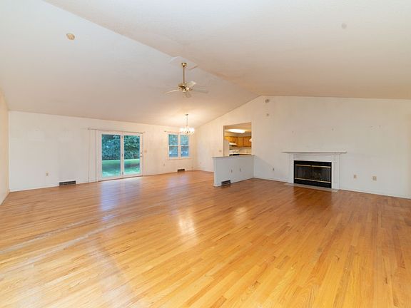 Expect to be impressed with this oversized Ranch home on cul-de-sac. Huge Living room / dining room with hardwood floors, gas fireplace, Cathedral Ceilings and sliders out to large backyard. Laundry room / mud room off 2 car garage. Kitchen has a dining area and oak cabinets. Home has 3 bedrooms, all carpeted. Master BR with walk in closet, master bath with the other 2 bedrooms being a good size. Basement is huge with plenty of shelving and storage and opportunity to finish for additional living space. This home has been well cared for and is a real find for those who are willing to do interior painting, and carpet replacement.