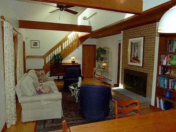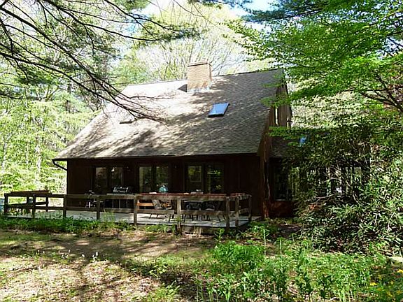 Country Contemporary just .25 miles from 102, and 3.7 miles from 95. With huge windows and great privacy, the outdoors invades every room in the house. Vaulted and beamed ceilings, wide open floorplan, first floor bedroom and full bath, 17x23 master.