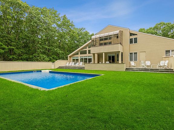 Open floor plan concept with enormous king master suite on 2nd floor with jacuzzi tub and private sunroom. Sunroom has its own bistro table and chairs for morning coffee and views of the private landscape. Large bedrooms and bathrooms throughout. New flat screen TV's in each bedroom, cable, wifi, Netflix. Freshly stocked this season with linens, towels, and all brand new modern furniture! Easy access to Long Beach, Cromer's, MJ Dowlings and Sag Harbor Village. Great for working or playing; downstairs bedroom has built in desk space with file drawers. Can also work poolside!