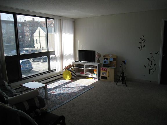 The unit enjoys a modern kitchen and appliances, and has two equal size bedrooms, a very spacious dining and living area that has a wood stove. Steps to Harvard with Parking!
