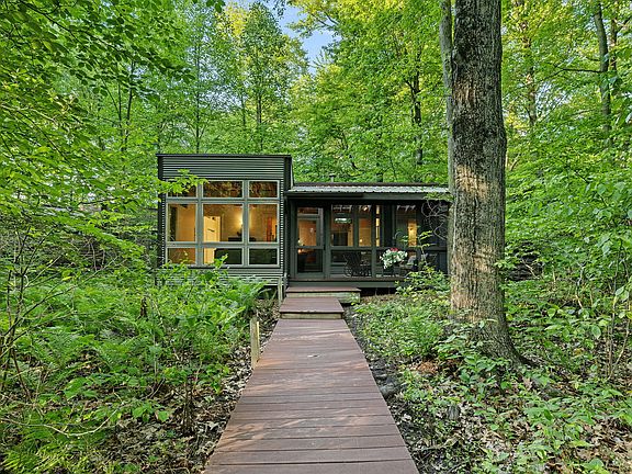 Don't miss this opportunity to live in the highly coveted and conservation-minded community of Tryon Farms. This sophisticated 2 bed / 2 bath modern cabin is tucked into the woods and offers peace, tranquility and privacy. Camping was never this cool. The open concept floor plan, large windows and high ceilings brings the outdoors in. The house boasts a large screened-in porch perfect for outdoor living or dining as well as a deck with a natural gas line for grilling. The home has been freshly refurbished and is being sold turnkey. Want to embrace the outdoors? Stroll or bike Tryon's 5+ miles of trails spread over 120 acres of shared and preserved woodlands, pasture, meadowlands and pond; or swim in the associations' eco-friendly pool. (Separate membership required.) Located only 65 miles from Chicago's loop and a few miles to the beaches of Lake Michigan, this is the perfect get away.
