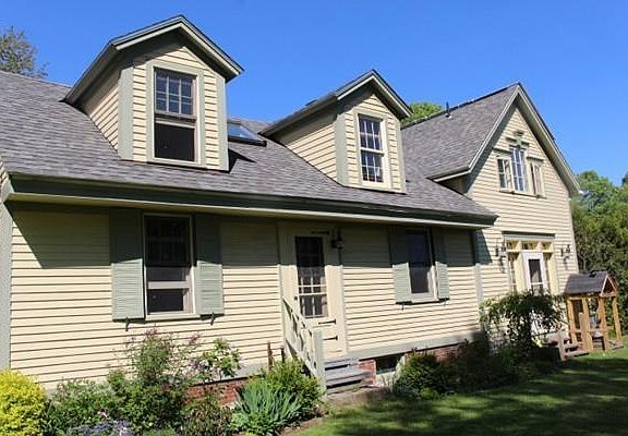 Beautifully restored Antique home with 2 additions seamlessly blended. All with period details including exposed beams, copious built-ins, wide pine flooring and wainscotting. Open versatile floor plan filled with light. This home is in a Historic neighborhood with views in every direction. Private, yet walk to "town", pond and park. First floor has a master bedrm with vaulted ceilings, skylight, and connects to a screened in porch and sweet second original bedroom. Front Porch opens to large living rm and meanders to the dining room. Cozy up to the woodstove in DR/Kitchen or walk out to 15x10 deck overlooking perennial gardens and the hills. Full bath with separate shower/bath area and laundry. The second floor has wonderfully angled rooms and two additional bedrooms. Master suite with skylight, office, balcony and jacuzzi bath. Newer Roof, electric, heat, hw, solar panels and shed. Be part of a thriving community with wonderful schools and 10 minutes to 91. All this and Comcast too!