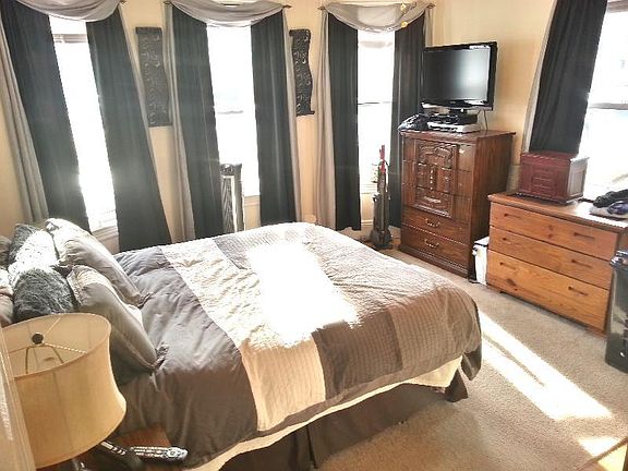 First floor one bedroom on Vernon. Open concept living room dining room with island bar. Updated bathroom and large bedroom with double closets. Common washer dryer (free) provided by landlord. 2 off street parking included. Small front yard outdoor area. Oil heat (newer system). Plenty of additional storage in basement. Email for immediate response.