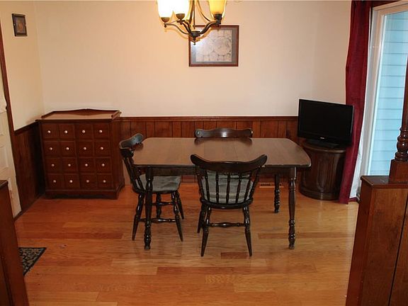 HOME SWEET HOME! H088806 4 bedroom 2 full bath cape cod on a quiet cul-de-sac. Gleaming hardwood flooring in Eat in kitchen. Built in wine rack and breakfast bar. Dining area with sliding glass door to deck and back yard. Good sized bedrooms with hardwood flooring. Updated bath with ceramic tile. Light and bright living room with hardwood flooring. 2 upstairs bedrooms with full bath and linen closet. Glass block windows in the basement partially finished with knotty pine and cedar closet. Professionally waterproofed basement with lifetime guarantee. New sump pump. Newer garage door. Vinyl sided. Roof 2012. HURRY for this sweet deal!