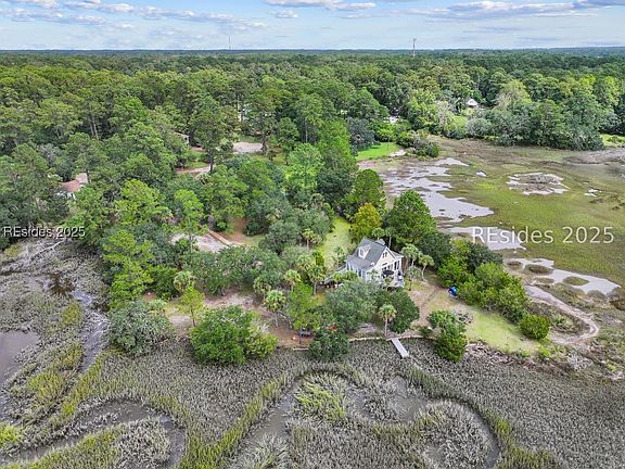 A rare marshfront gem nestled on nearly 3 acres of serene Lowcountry beauty offers unobstructed views all the way to the May River. Located just minutes from historic Bluffton with its vibrant dining, shopping, and entertainment, this property provides the perfect balance of privacy and convenience. No town limits, no HOA, and no restrictive covenants just the freedom to create your ideal coastal retreat. Enjoy kayaking right from your backyard, soak in the peaceful, panoramic marsh views, and watch local wildlife in their natural habitat. The existing marsh cottage is being sold as-is and will require some TLC, but the potential is undeniable. Whether you are looking to renovate, build new, or simply invest in prime Lowcountry land, this is your opportunity. Plus, the home is already connected to a brand new septic system, saving you time and investment on essential infrastructure. Bring your vision and make this your personal Lowcountry paradise!