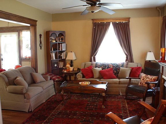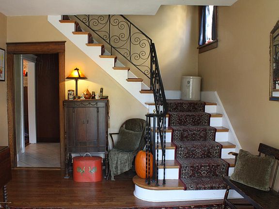 This circa-1912 foursquare home is on a tree-lined, family-friendly street. For the love of the Arts and Crafts period, the home has many elements of its modest original historic detail intact: chestnut door & window trim, cottage-style window sashes, restored chestnut pocket doors, diamond-patterned stair landing window, 5 panel doors w/original hardware, tall-profile base trim & built-ins.