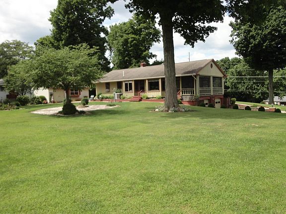 BEAUTIFUL SETTING! This ranch on a basement has incredible views over its 1+ acre lot, out in the country setting, on the edge of Angola. Especially from the large screened porch on the East end of the house for beautiful sunrises, and afternoon shade. The garden shed was originally built as an extra garage for a collector car. The original hardwood floors are beautiful. New water heater, pressure tank and sewer pump all in 2021. New well in 2008. TV in living room is included. Dresser in master bedroom is built in. Basement has a shower room that could be converted into a full or half bath.