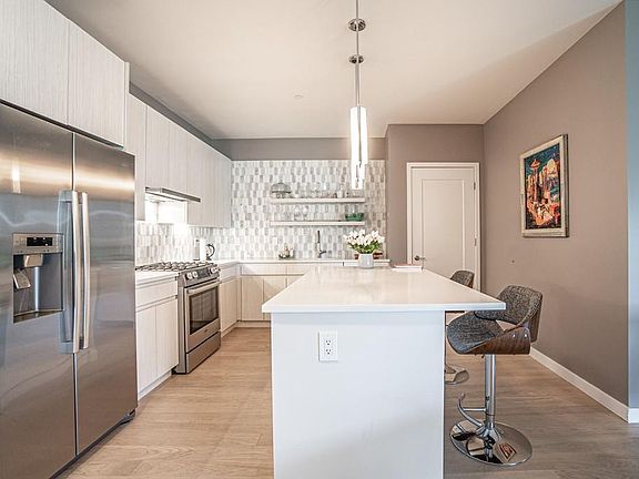 Live in luxury at Port 45 in South Bostion! This home offers a contemporary living space with 2 beds and 2 full baths plus office, in-unit laundry, private outdoor space and garage parking. Modern kitchen with quartz counters, stainless appliances and island opens to living/dining area with access to your large private patio overlooking the tree lined courtyard. Two bedrooms each with walk-in closet and ensuite bathroom, plus a bonus room covered in "idea paint" - perfect for white boarding in your home office! State-of-the-art home integration system. Building amenities include roof deck with panoramic views, concierge, grand lobby with seating areas, common area wi-fi and video surveillance, fitness center, club room, common terrace, elevated courtyard, garage with access to charging stations, bike storage room and bike sharing program. One garage parking space included in rent. Located just a few blocks from the Seaport and the red line with direct service downtown Boston
