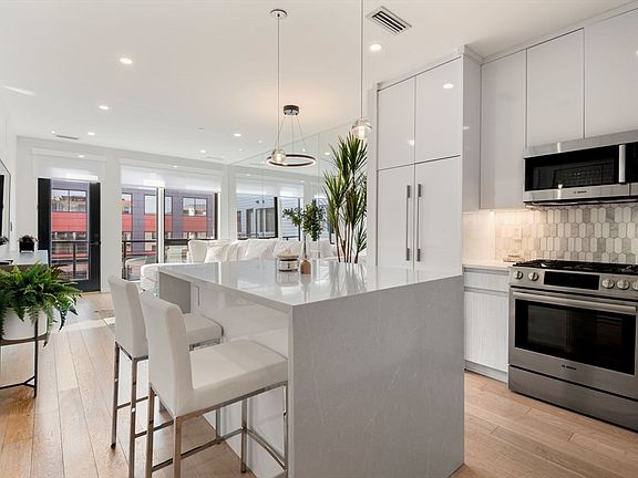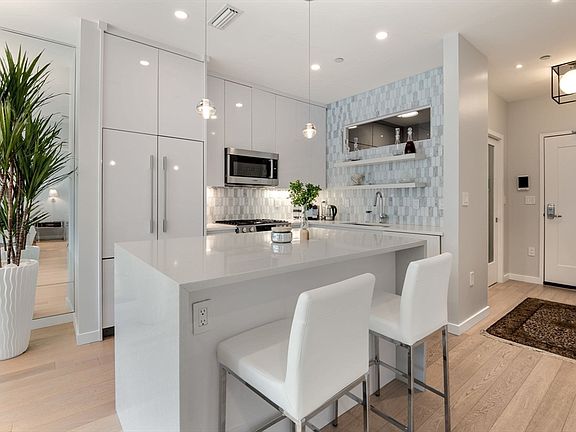 Penthouse 1Bed +Office w/GARAGE PARKING at sought after PORT 45. This tastefully designed unit has a spacious/open floor plan w/ floor to ceiling windows, offering an abundance of natural light. The layout presents an oversized living room with access to a private balcony overlooking a manicured courtyard. The living room seamlessly opens to the sleek kitchen while offering space for a dining area. The designer kitchen is highlighted by a waterfall island, Bosch appliances, tile backsplash and combination of cabinetry & open shelving. Enter your king-size bedroom and find a custom walk-in closet that leads to the beautiful bathroom w/glass shower, Calcutta marble inspired tile, oversized vanity, medicine cabinet & linen storage. There is also a separate office ideal for work-from-home. Unit also offers high ceilings, hardwood floors, electronic blinds, in-unit laundry, & central AC. PORT 45 is pet-friendly, offers a concierge, gym, roof deck, clubroom, EV charging, & bike storage!